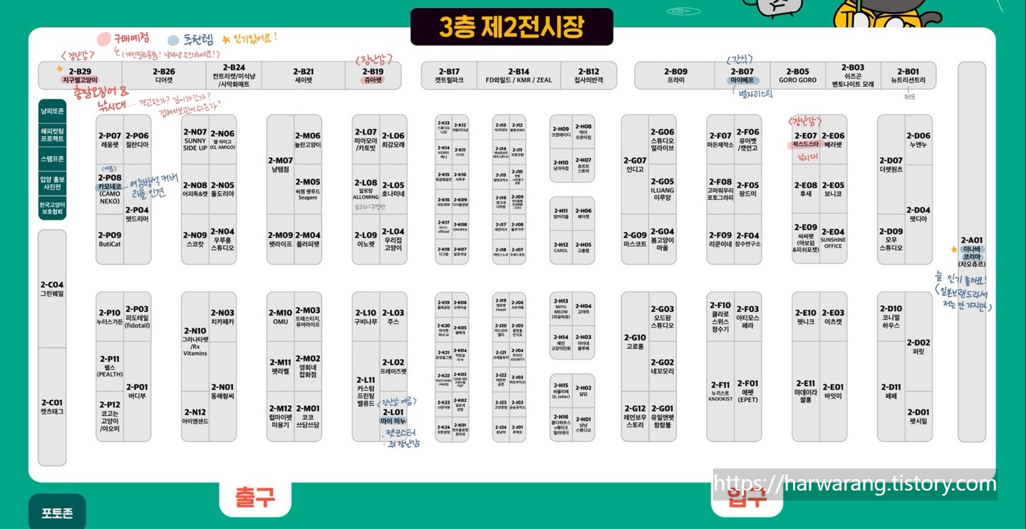 가서 뭐 살 거 있겠어하다가도 한 아름 구매해서 오게 되는 궁팡 2025 (양재 AT센터)를 또 가게 되었습니다. 3년 차 접어든 집사로서 개인적으로 만족해서 늘 사는 제품들, 캣 박람회만 가면 인기폭발하던 부스들, 커뮤니티에서 집사님들이 많이 추천해주는 제품들을 모아 궁팡 가기 전 위시리스트를 부스배치도에 정리해봤어요!
