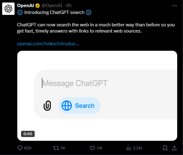 최근 ChatGPT 사용 빈도가 떨어져서 유료플랜을 중지할까 고민하던 중에 상당히 유용해 보이는 기능이 출시되었습니다. 이름하여 searchGPT (또는 ChatGPT Search).